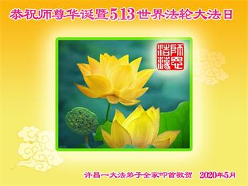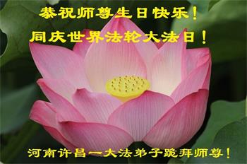 河南许昌一大法弟子全家恭祝慈悲伟大的师尊华诞!恭贺世界法轮大法日暨大法洪传二十八周年!