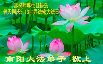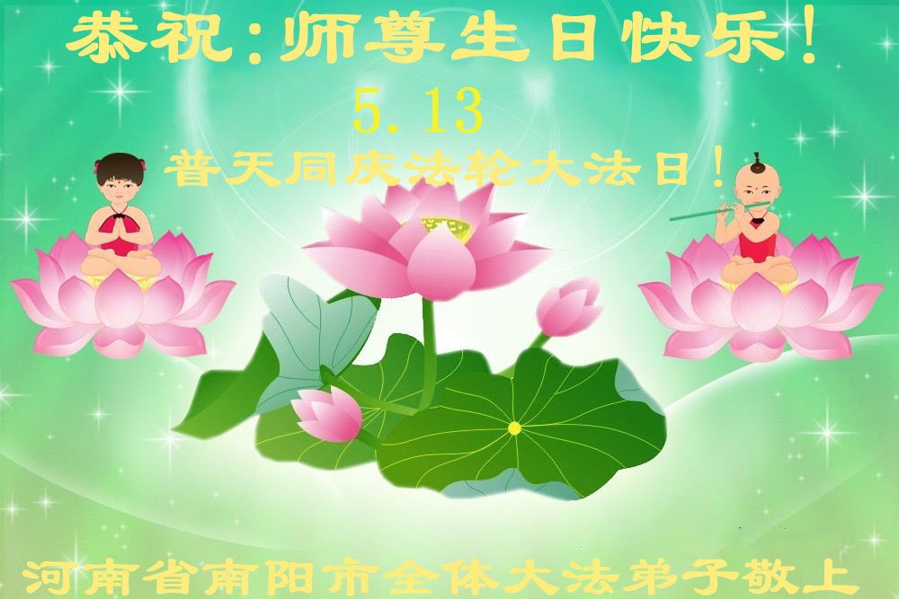 河南省南阳市全体大法弟子恭祝慈悲伟大的师尊生日快乐!恭祝世界法轮大法日! 河南省南阳大法弟子恭祝慈悲伟大的师尊生日快乐!恭祝世界法轮大法日!