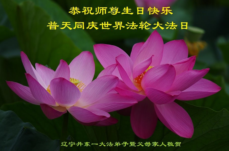 辽宁省丹东市一大法弟子携父母家人恭祝师尊生日快乐!