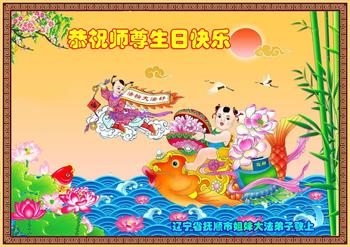 辽宁省抚顺市两名大法弟子恭祝师尊生日快乐!