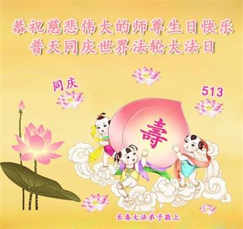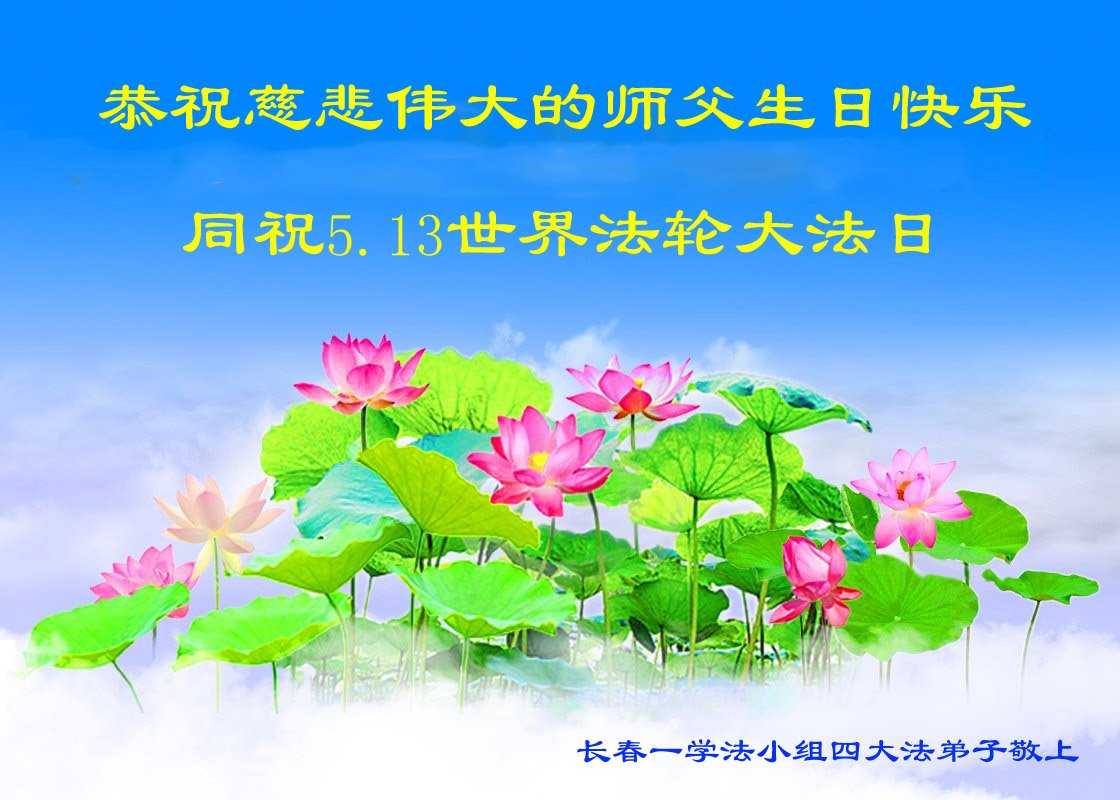 值此5.13法轮大法日到来之际,恭祝慈悲伟大的师尊生日快乐!感谢师尊慈悲苦度! 长春法轮大法弟子一家人 吉林省长春大法弟子恭祝师尊生日快乐!