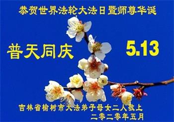 吉林省长春市榆树市大法弟子母女二人恭贺世界法轮大法日暨师尊华诞!