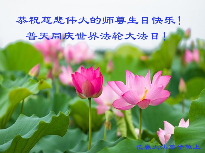 恭贺世界法轮大法日! 感恩师尊的慈悲苦度和对众生的付出!弟子们会尽力做好自己该做的。 吉林省长春市大法弟子恭祝慈悲伟大的师尊生日快乐!