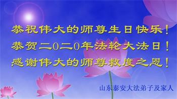 山东泰安大法弟子及家人恭祝伟大的师尊生日快乐!恭贺法轮大法日!感谢伟大的师尊救度之恩!
