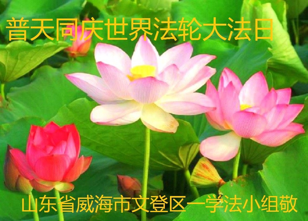 山东省威海市文登区一学法小组大法弟子同庆世界法轮大法日!