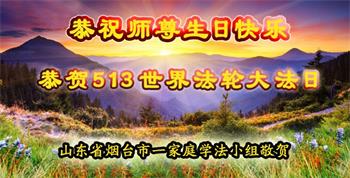 山东省烟台市芝罘区大法弟子恭祝慈悲伟大的师尊生日快乐!普天同庆世界法轮大法日!