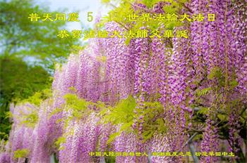 普天同庆,苍宇同贺 法轮大法好! 真 善 忍好! 唤苍宇,救众生 明真相,得救度 谢谢师尊慈悲救度 恭祝师父生日快乐! 师父您辛苦了! 中国大陆大法弟子恭贺师尊华诞!同庆世界法轮大法日!