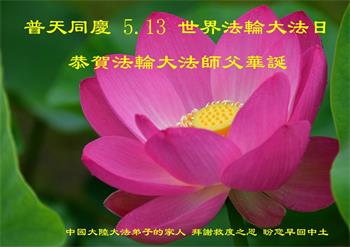 感恩师尊,恭祝师尊生日快乐! 中国大陆大法弟子的亲人恭贺世界法轮大法日暨师尊华诞!