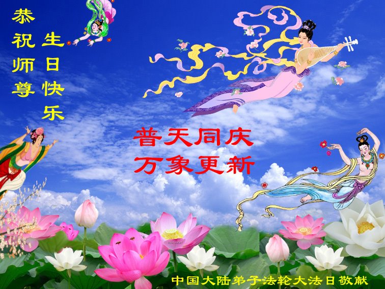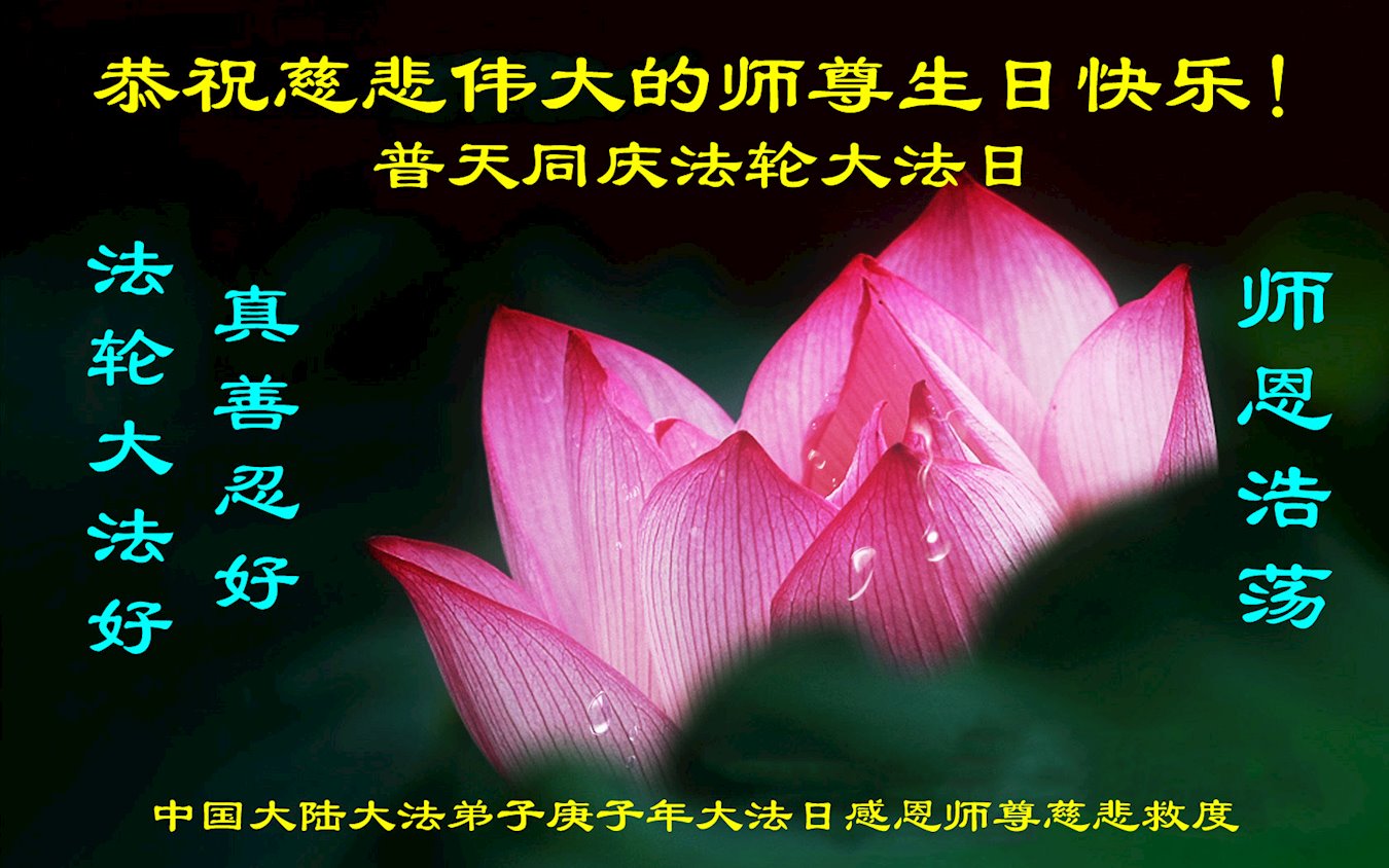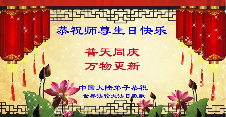 师父辛苦了! 大陆大法弟子恭祝慈悲伟大的师尊生日快乐!庆祝世界法轮大法日!