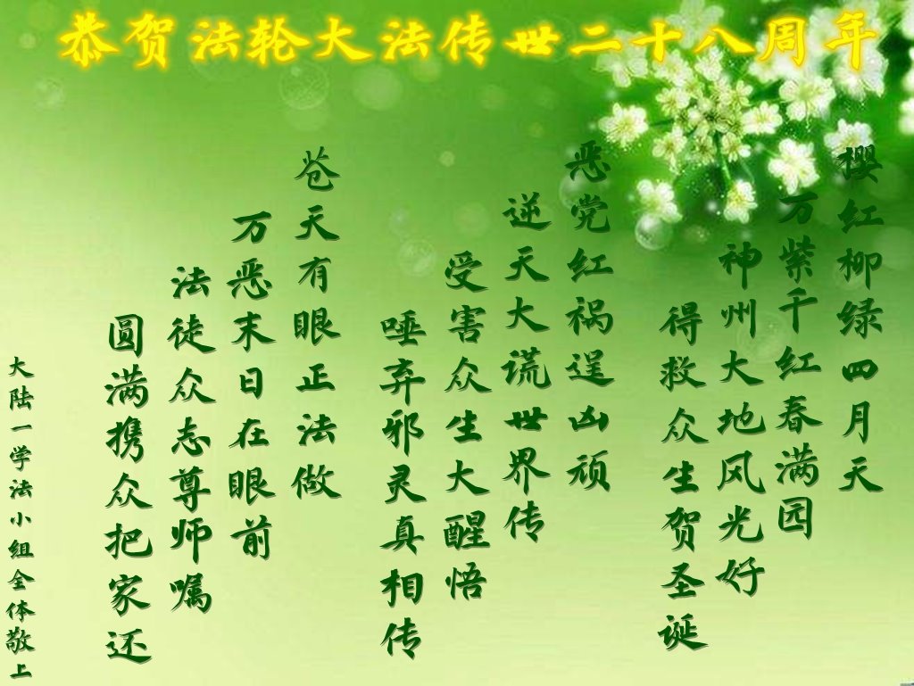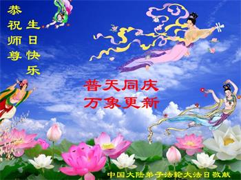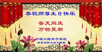 大陆大法弟子恭祝师父生日快乐!祝贺大法洪传二十八周年!