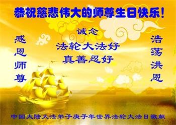 大陆大法弟子恭贺世界法轮大法日!恭祝师尊华诞!