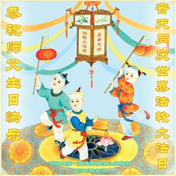 我怀着非常激动的心情,首先恭祝师父生日快乐! 普天庆祝师父传法二十八年,师父佛恩浩荡,普度众生,二十八年师父如一日,为救度众生,师父“操尽人间事”(《洪吟》〈高处不胜寒〉); 二十八年来,师父时时刻刻都在保护和看护大法弟子,常常鼓励和梦中点悟。 我们用世上最美好语言也表达不了对师父的感恩之情,只有多学法,多救人,完成我们的使命,让师父少操一份心。 最后再次祝师父生日快乐! 大陆一学法小组大法弟子恭祝慈悲伟大的师尊生日快乐!