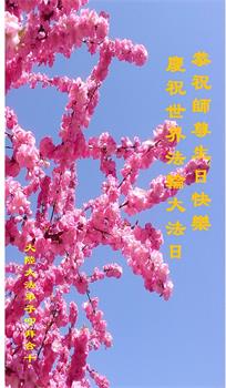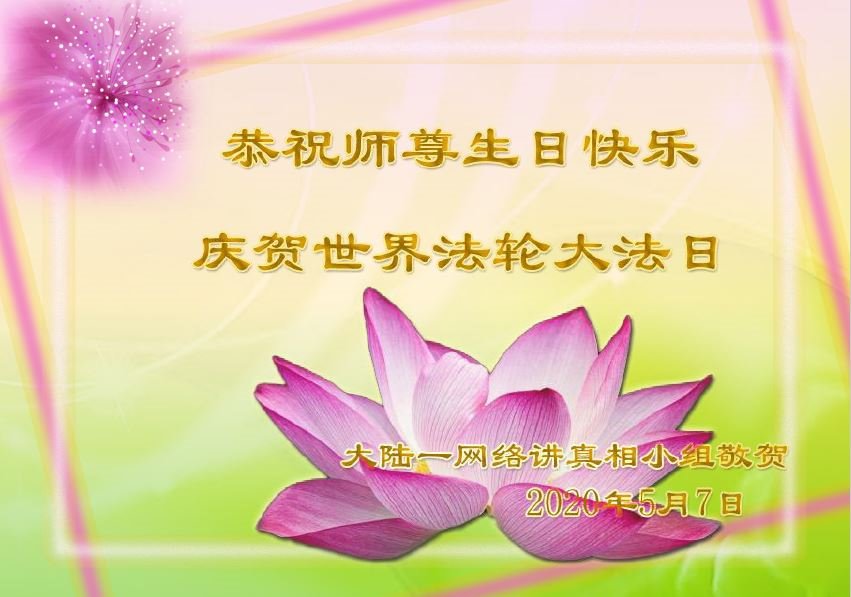 二零二零年五月十三日,是法轮大法弘传世界二十八周年暨第二十一届世界法轮大法日,也是慈悲伟大师尊的华诞,马上就要到了,在这普天同庆的日子里,让我们一起恭祝伟大慈悲的师尊生日快乐!庆祝法轮大法弘传世界二十八周年的殊荣的日子! 我是大法弟子,得法也有20多年了,在这20多年的修炼中,弟子深切的体会到没有师尊的时刻精心保护是走不到今天的,弟子感恩师尊的慈悲救度,弟子唯有精進实修。 大陆一网络讲真相小组恭祝师尊生日快乐!庆贺世界法轮大法日!