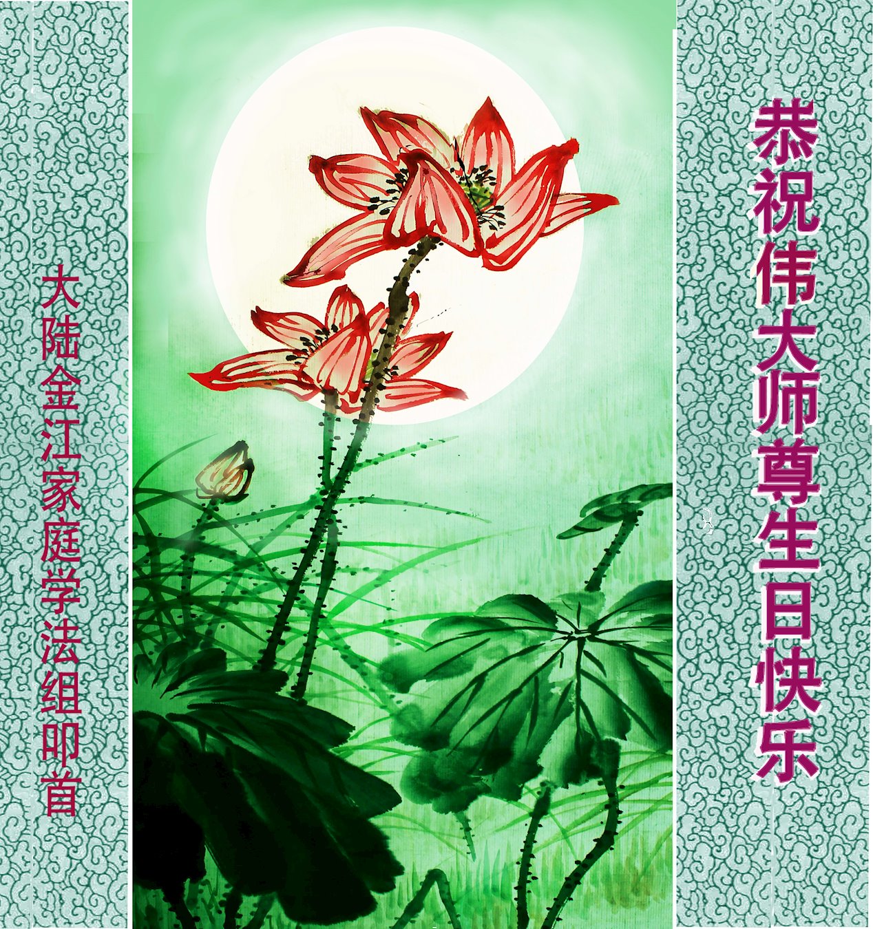 中国大陆一网络讲真相小组恭祝慈悲伟大的师尊生日快乐!普天同庆世界法轮大法日!