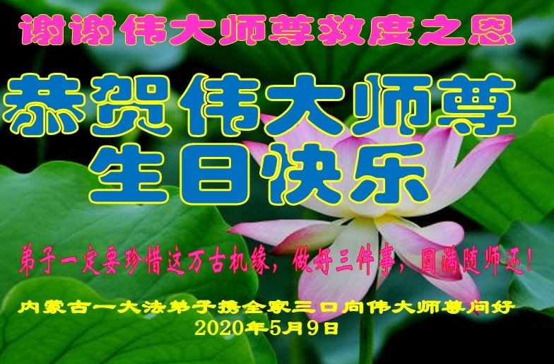 【明慧网二零二零年五月十四日】 内蒙一大法弟子携全家向伟大师尊问好!