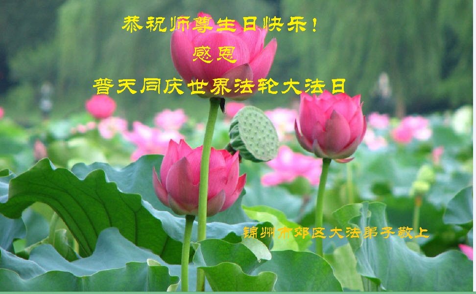 辽宁省锦州郊区大法弟子恭祝师尊生日快乐!普天同庆世界法轮大法日!