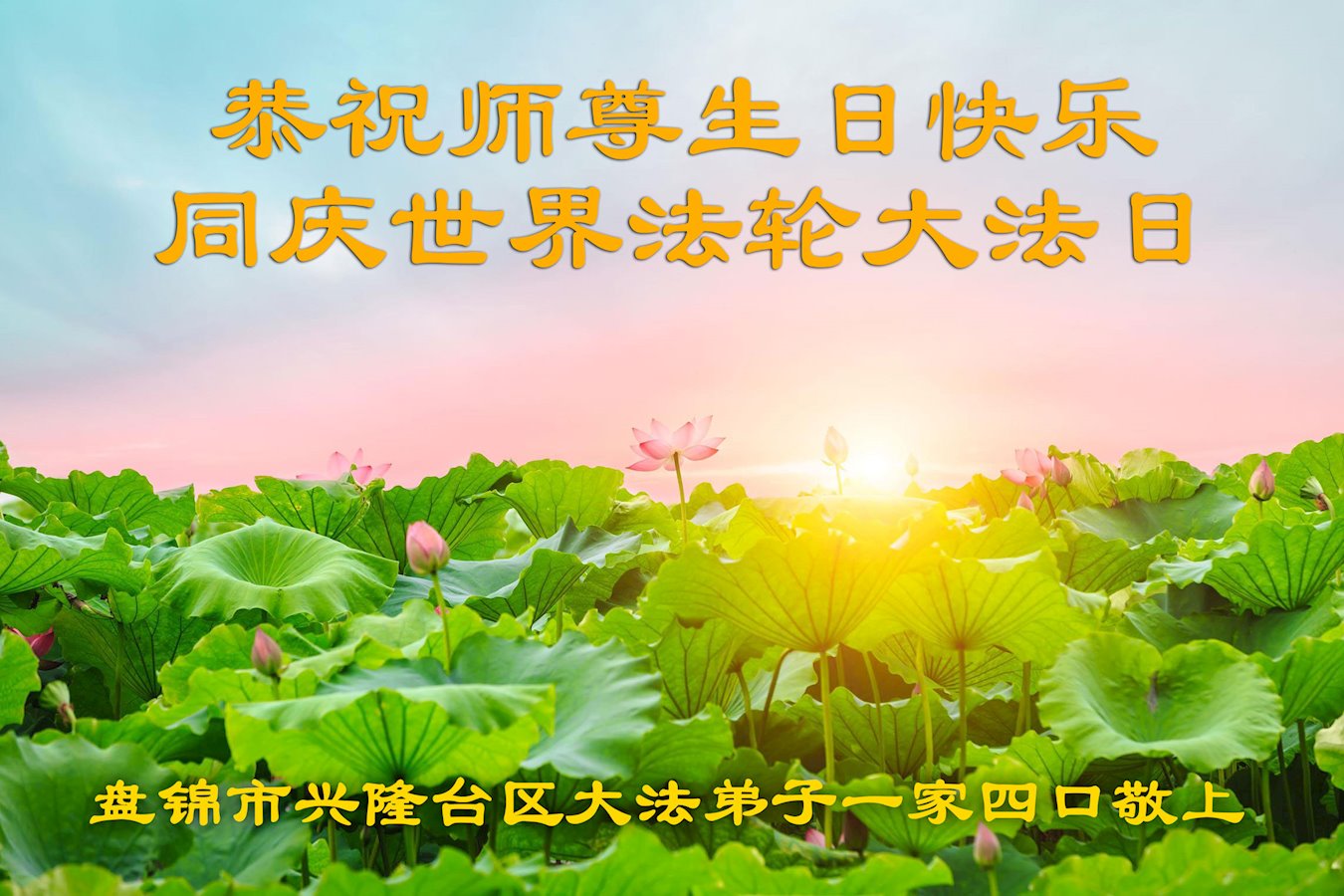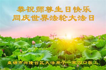 辽宁省盘锦市西三场全体大法弟子向师尊问好!恭祝师尊生日快乐!普天同庆世界法轮大法日! 辽宁盘锦大法弟子恭祝师尊生日快乐!