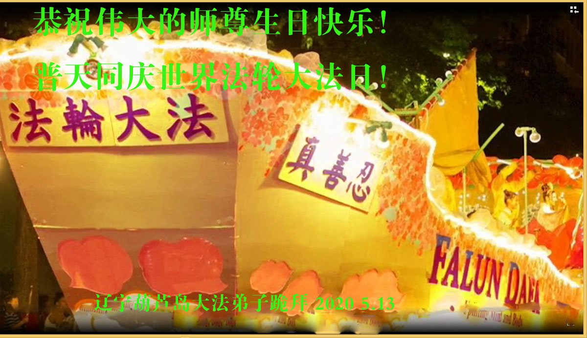 辽宁葫芦岛大法弟子恭祝伟大的师尊生日快乐!普天同庆世界法轮大法日!