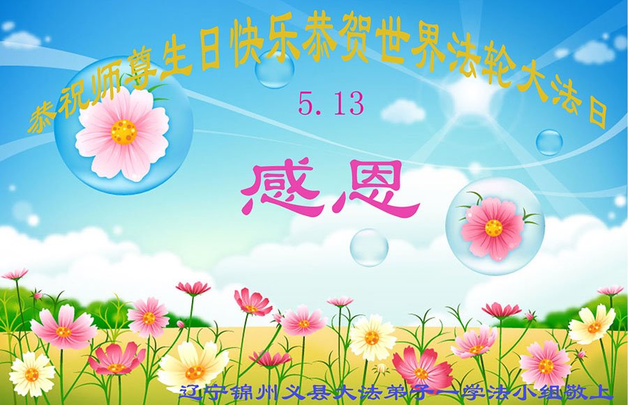 辽宁锦州市义县大法弟子恭祝师尊生日快乐!普天同庆世界法轮大法日!