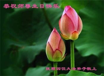 恭祝师尊生日快乐!恭贺世界法轮大法日! 千言万语难以表达弟子对师尊的感恩,弟子一定在剩下的时间里,做好大法弟子应该做的三件事。 抚顺两学法组四位大法弟子叩拜敬上 辽宁省辽阳市大法弟子恭祝慈悲伟大的师尊华诞!庆祝法轮大法日!
