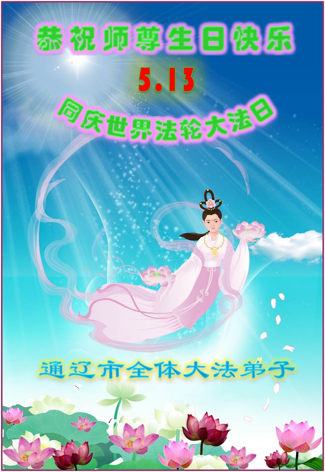恭贺世界法轮大法日!5·13普天同庆! 师尊辛苦了!弟子无以言表对师尊的救度之恩,唯有精進,走好最后的路 辽宁盘锦大法弟子 2020年5月12日 辽宁省盘锦市一大法弟子全家恭祝慈悲伟大的师尊生日快乐!
