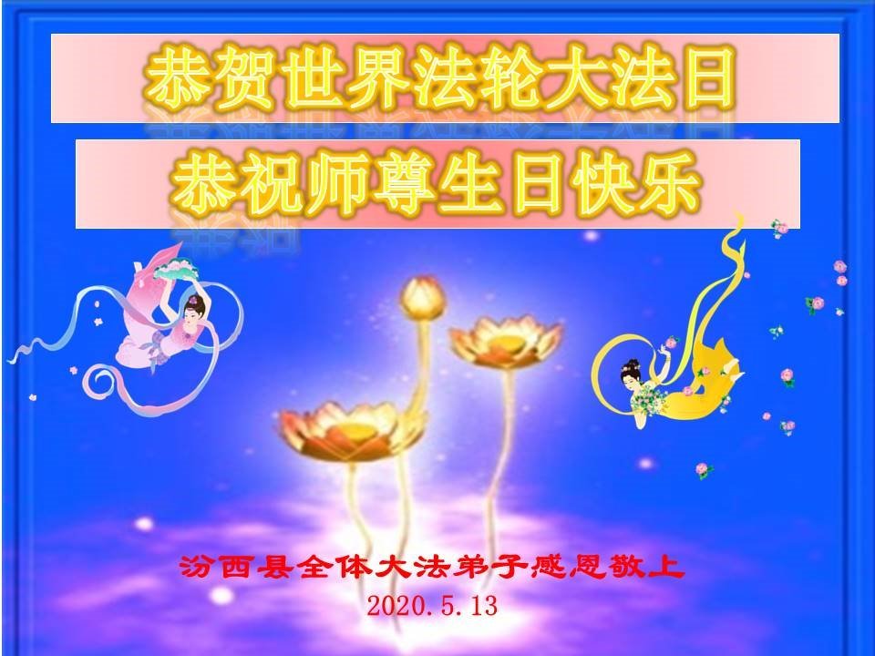 【明慧网二零二零年五月十四日】 山西省临汾市汾西县大法弟子恭祝师父华诞暨世界法轮大法日!