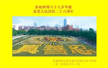 甘肃兰州大法弟子与得救的生命恭祝师尊生日快乐!