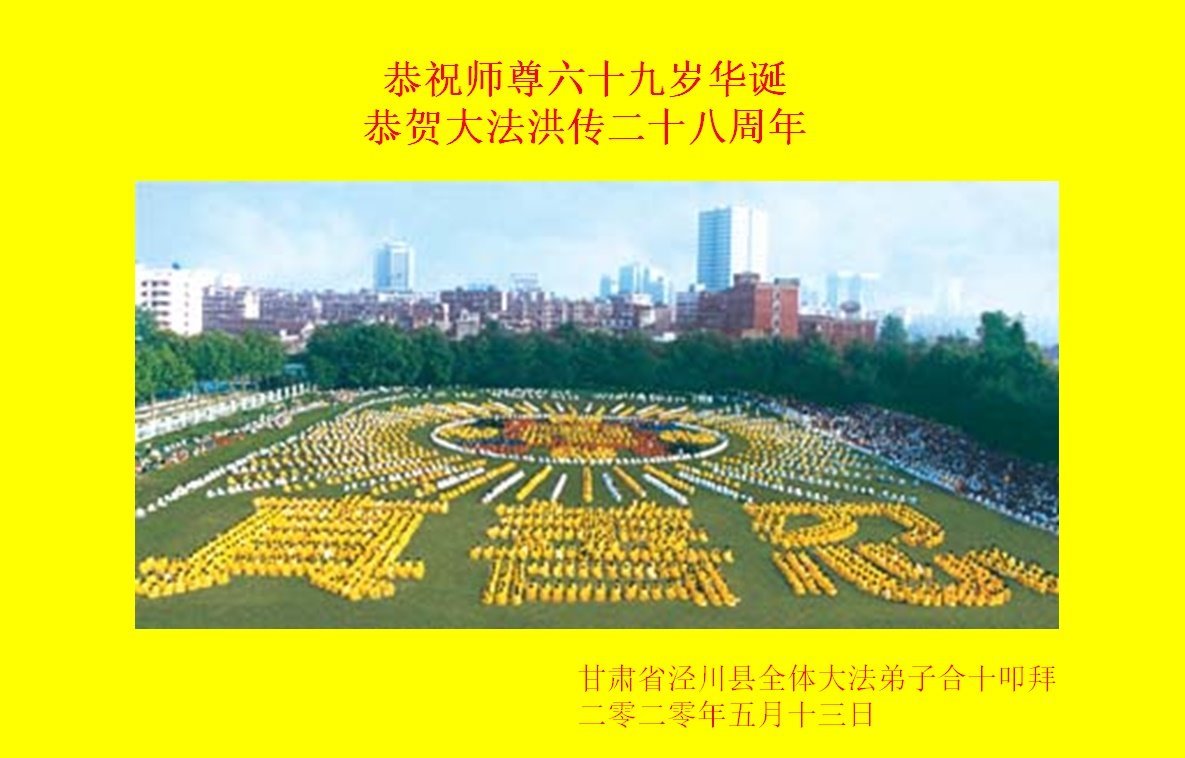 甘肃省平凉市泾川县全体大法弟子恭祝慈悲伟大的师尊生日快乐!