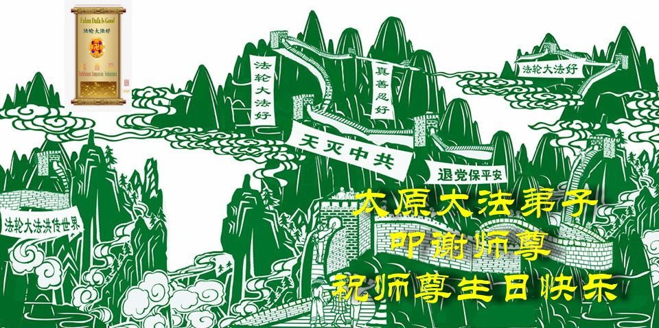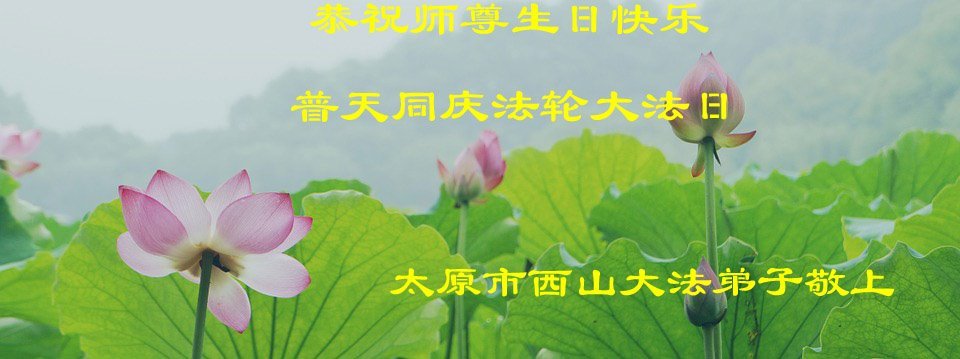 太原大法弟子叩谢师尊,祝师尊生日快乐!师父,我们想念您!合十! 山西省太原大法弟子恭祝师父生日快乐!庆祝5·13世界法轮大法日!