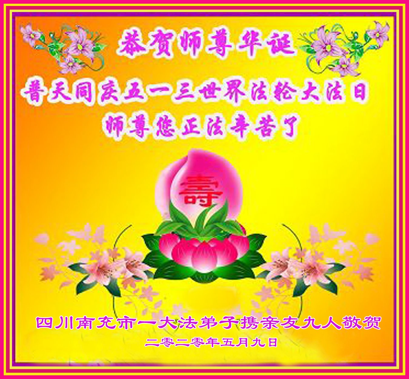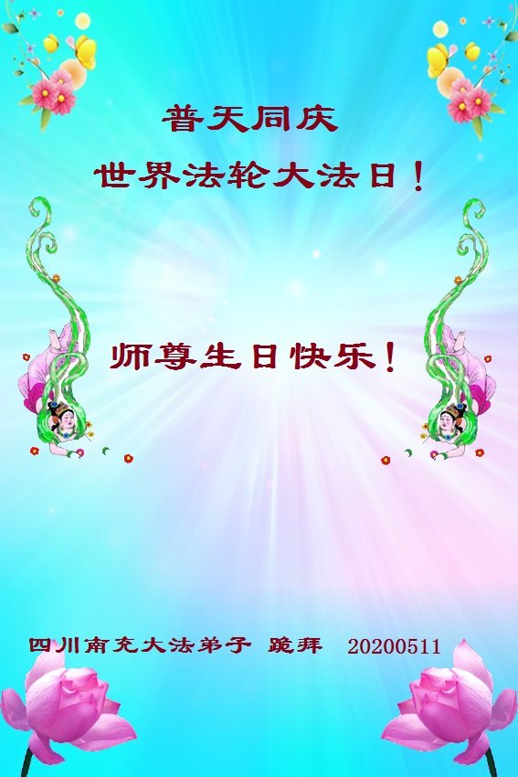 普天同庆五一三世界法轮大法日!师尊您辛苦了! 二零二零年五月九日 四川省南充市一大法弟子恭祝师尊生日快乐!