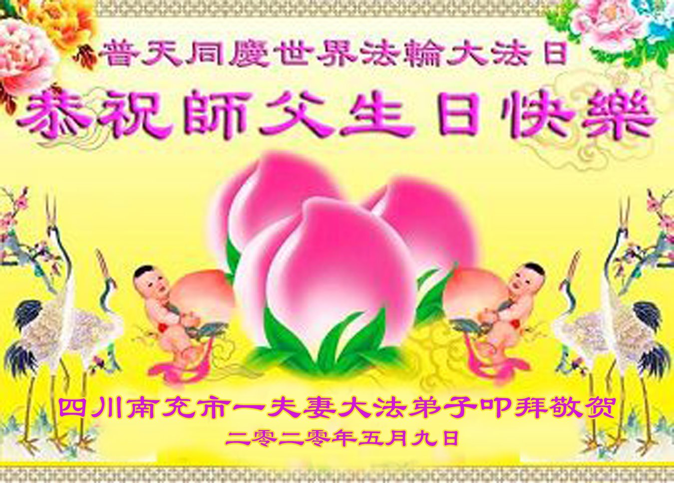 二零二零年五月 四川省南充市一夫妻大法弟子恭祝师父生日快乐!