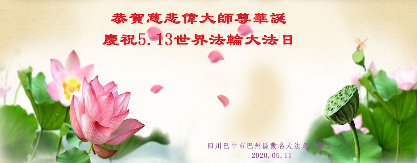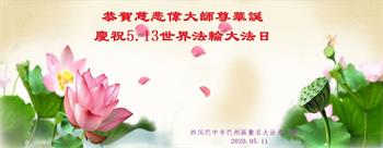 师尊您辛苦了!祝您生日快乐! 普天同庆5.13!弟子们一定在最后的时刻谨记师父教诲,多救世人与众生! 2020年5月11日 四川省巴中市全体大法弟子恭祝师父生日暨5.13世界法轮大法日!