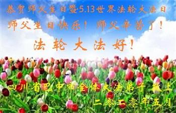 四川省巴中市巴州区大法弟子恭祝慈悲伟大的师尊生日快乐!