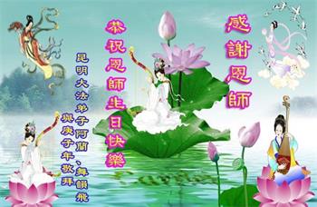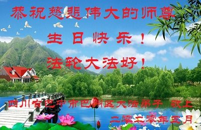 云南楚雄州全体大法弟子敬上 新疆清河县全体大法弟子恭祝师尊生日快乐!