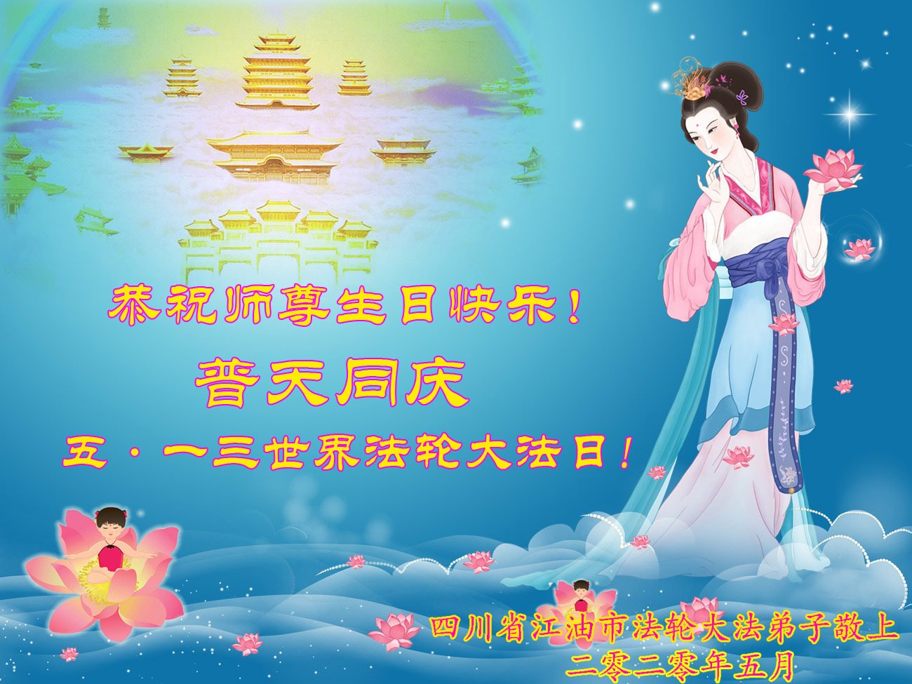 四川省绵阳市江油市大法弟子恭祝师尊生日快乐!普天同庆五一三世界法轮大法日!