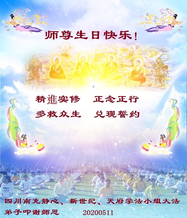 普天同庆世界法轮大法日! 二零二零年五月九日 四川省南充市顺庆区中城全体大法弟子恭祝师尊生日快乐!