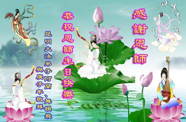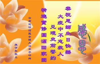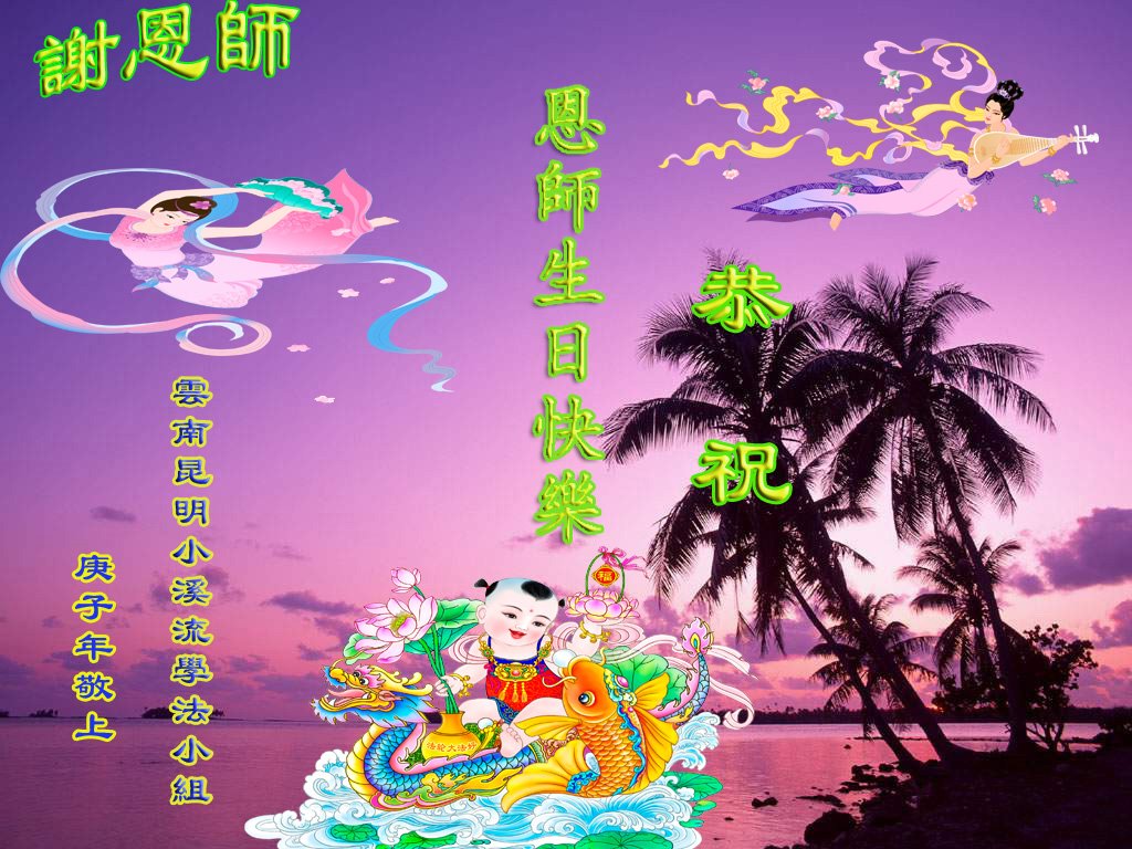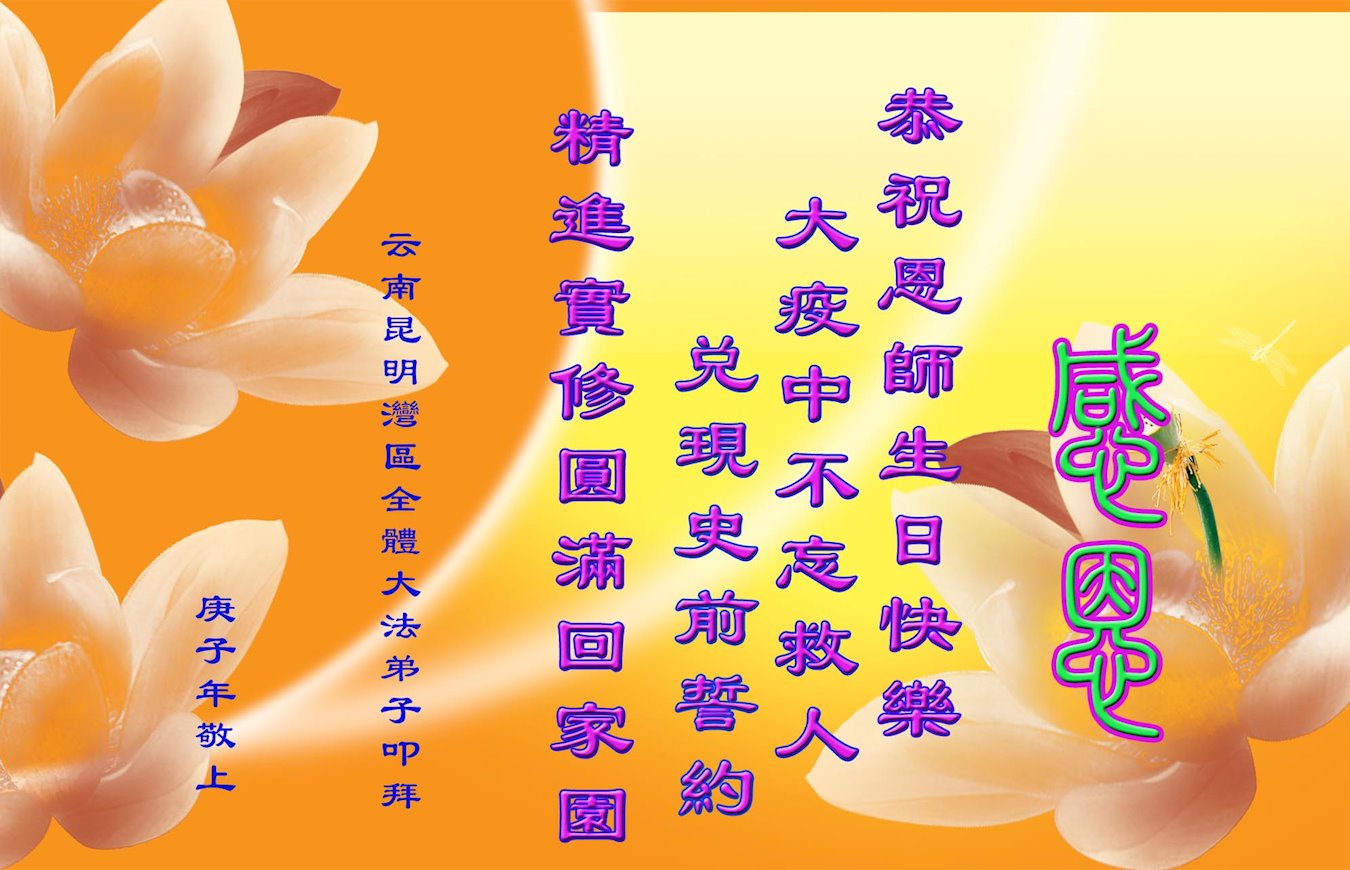 云南楚雄州全体大法弟子敬上 云南省昆明大法弟子恭祝恩师生日快乐!