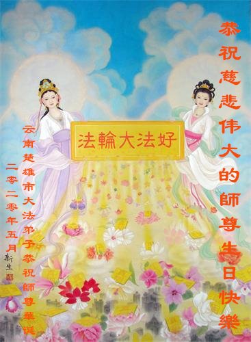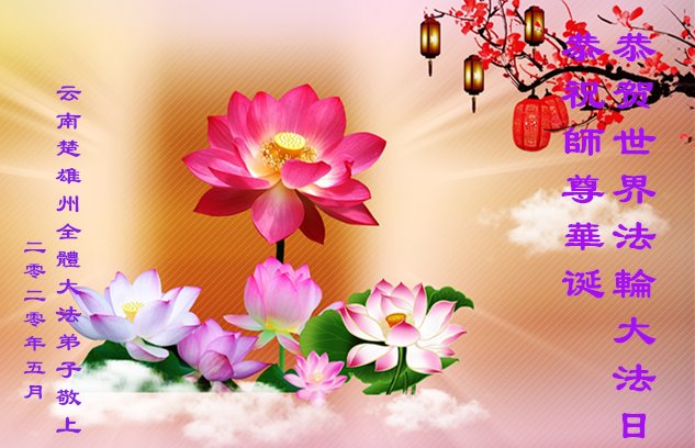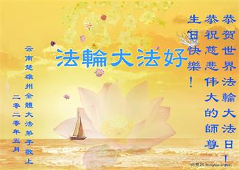 云南楚雄州全体大法弟子恭祝慈悲伟大的师尊生日快乐!恭贺世界法轮大法日!