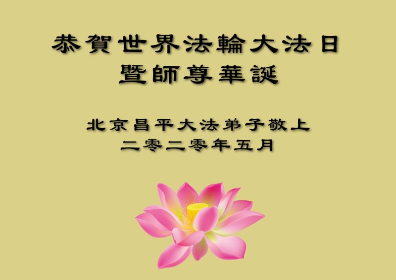 普天同庆法轮大法洪传廿八周年! 北京市海淀区、朝阳区大法弟子敬上 二零二零年五月 北京市一大法弟子敬祝慈悲伟大的师尊生日快乐!庆祝世界法轮大法日!