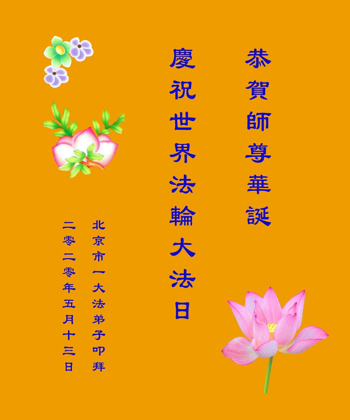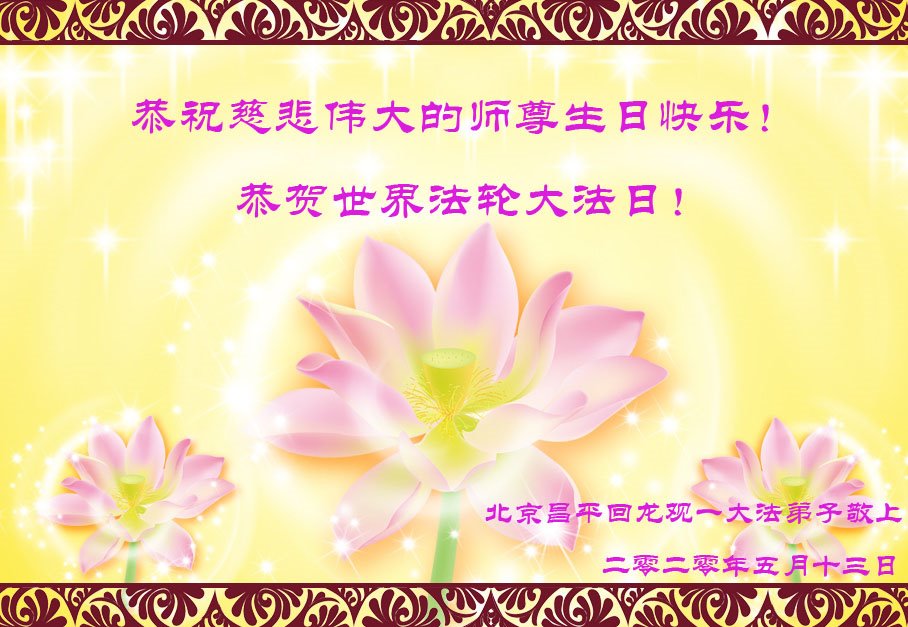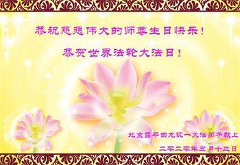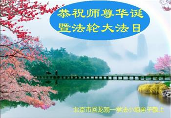 北京市大法弟子恭贺世界法轮大法日!恭祝慈悲伟大的师尊生日快乐!