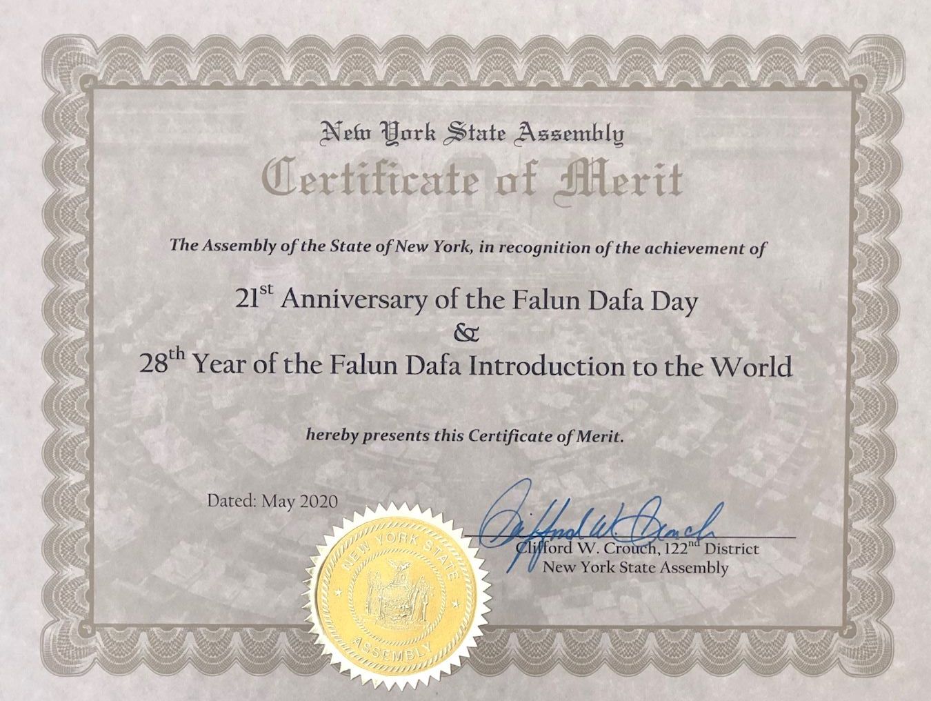 图9:纽约第122选区州议员克利福德·克劳奇(Clifford W.Crouch)褒奖法轮大法日,祝贺法轮大法弘传世界二十八周年。 |