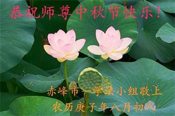 【明慧网二零二零年九月二十九日】 内蒙古赤峰市全体大法弟子敬祝师尊中秋快乐!