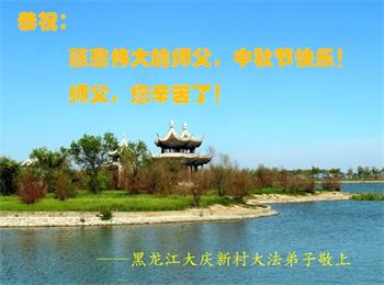 黑龙江大庆沿湖城大法弟子恭祝师尊中秋快乐!