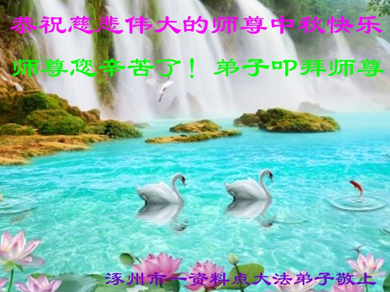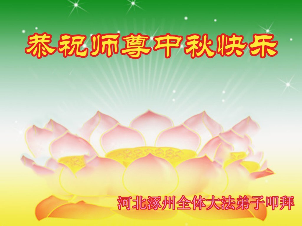 恭祝慈悲伟大的师尊中秋快乐! 师尊您辛苦了! 弟子跪拜叩谢师尊慈悲救度! 河北省保定市涿州市一资料点大法弟子敬上 河北保定市涿州市一大法弟子恭祝师尊中秋快乐!