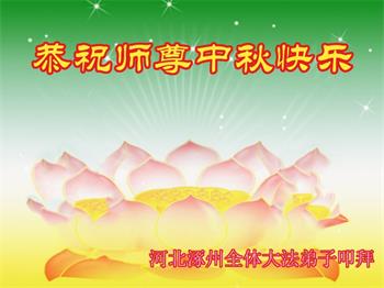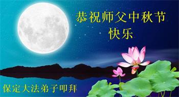 师父中秋节快乐! 我是河北涿州市大法弟子,修炼法轮大法后,我亲身体会了,心性道德提升,身体健康、家庭平安!法轮大法好,真善忍好!谢谢伟大的师父慈悲苦度,我今后就是学好法,做好三件事,助师正法! 河北涿州市一大法弟子敬上 河北保定定兴固城一大法弟子恭祝师尊中秋快乐!