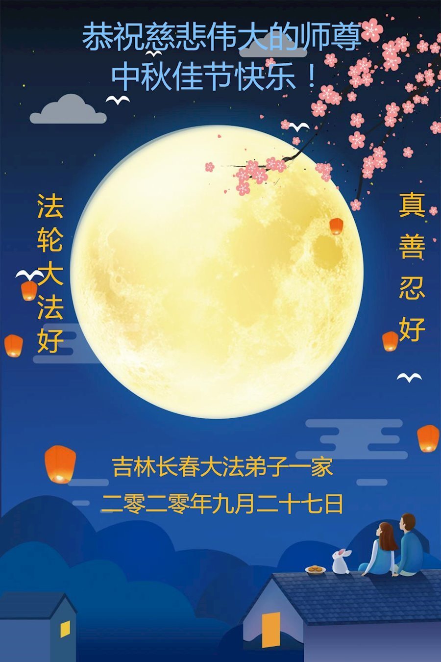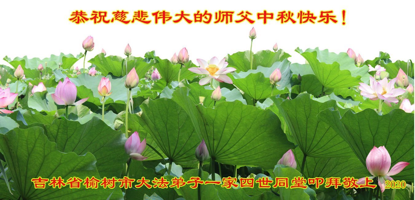 【明慧网二零二零年九月三十日】 吉林省长春市一大法弟子及家人恭祝慈悲伟大的师父中秋节快乐!