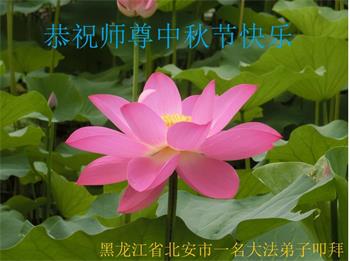 恭祝慈悲伟大的师父中秋节好!师父您辛苦了!师父您辛苦了!谢谢师父看护!谢谢师父点悟!谢谢师父救度!感念师恩!黑龙江大法弟子法莲敬呈! 黑龙江省黑河市北安市一学法小组全体大法弟子恭祝师尊中秋快乐!
