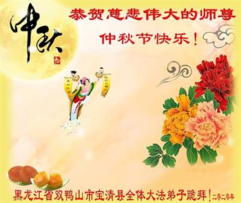 黑龙江省双鸭山市宝清县五九七大法弟子恭祝师尊中秋节快乐!