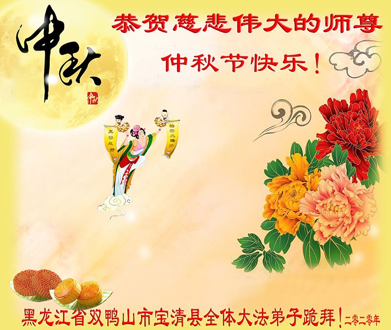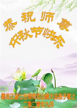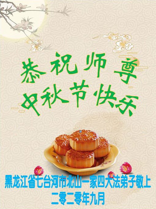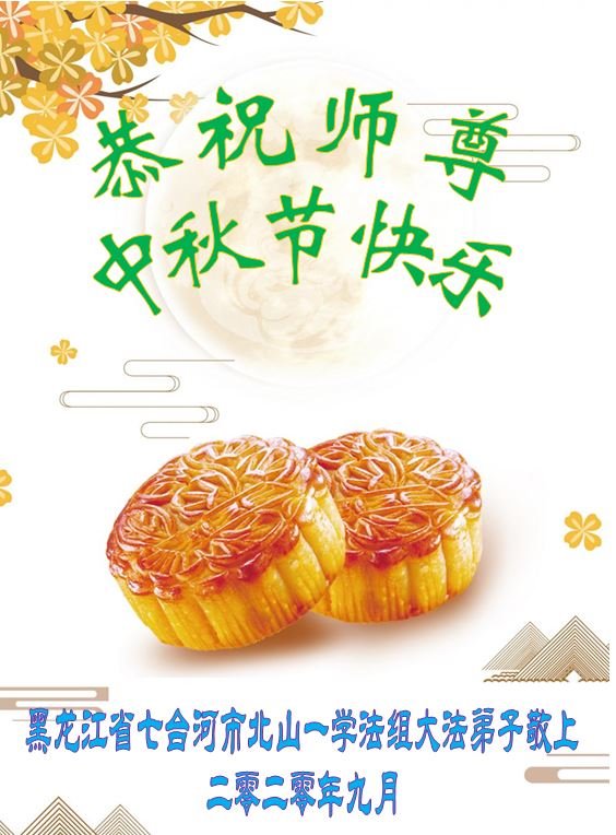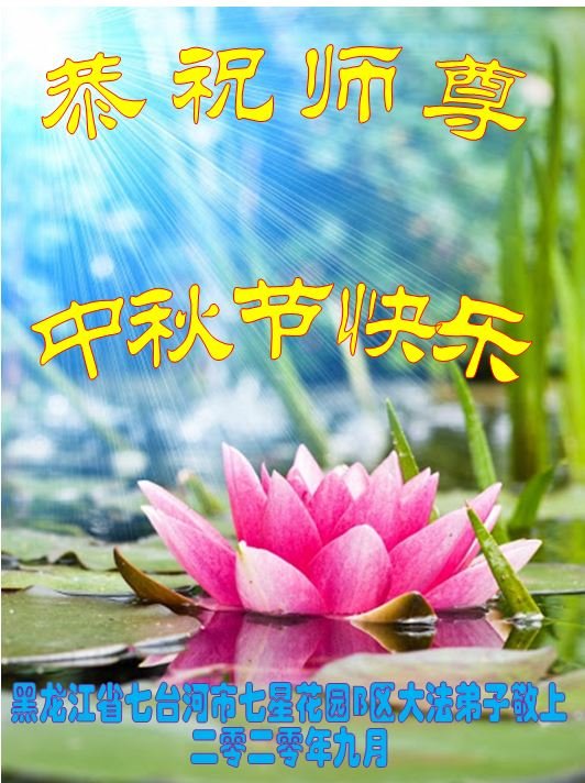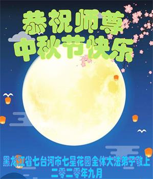 【明慧网二零二零年九月三十日】 黑龙江省七台河七星花园B区大法弟子恭祝师尊中秋快乐!