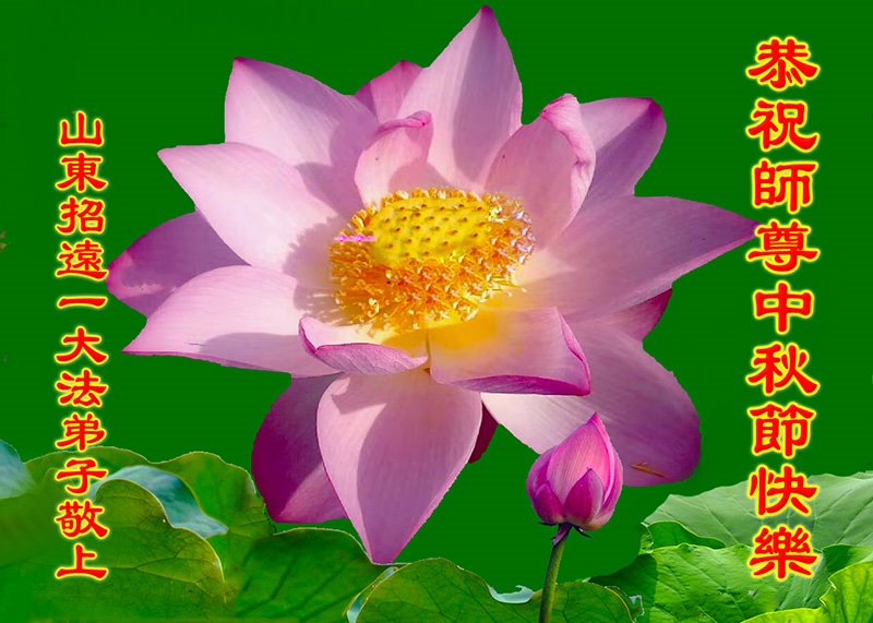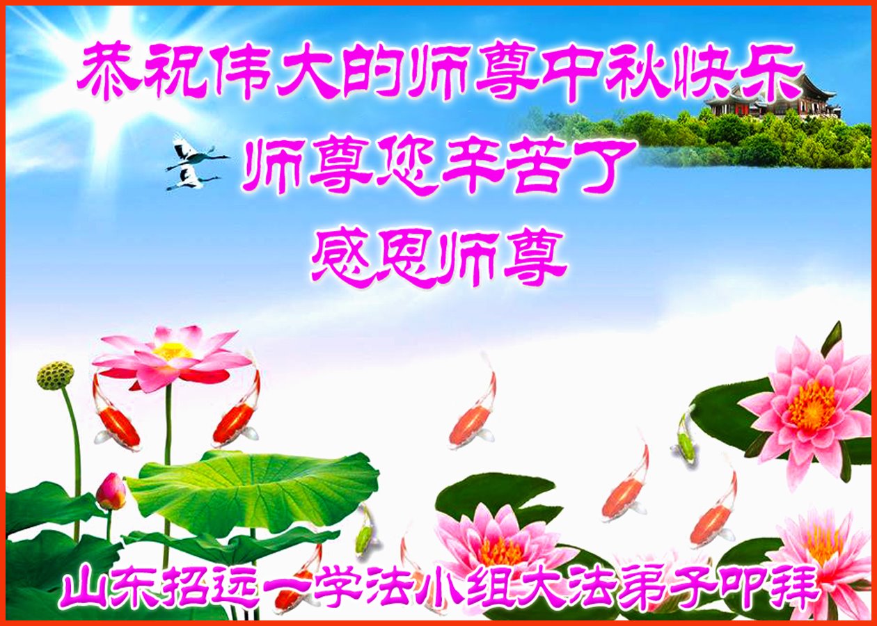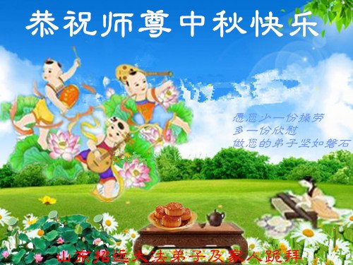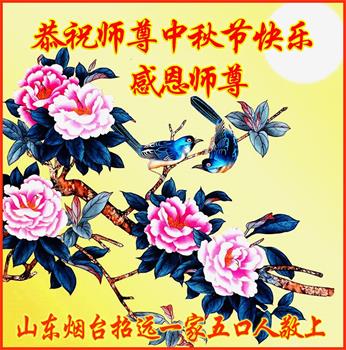 中秋节来临了,我们全家五口人祝慈悲伟大的师尊节日快乐!弟子非常想念师尊,盼早日见到师尊! 山东烟台招远大法弟子敬祝伟大的师尊节日快乐!